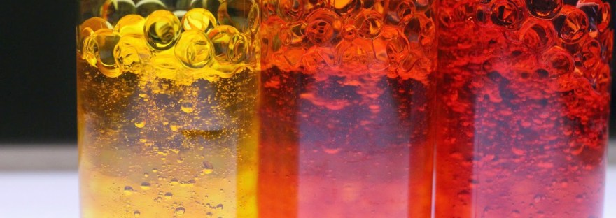 Líquidos: agua, aceite, gel, jabón líquido. A todos estos líquidos se les puede agregar color usando una mínima porción de colorante vegetal.