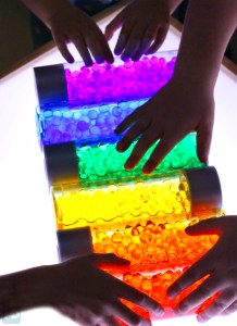Botellas sensoriales sobre la Mesa Lumínica MD