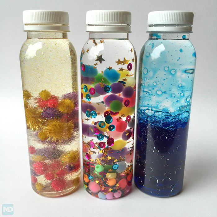Botellas sensoriales sobre la Mesa Lumínica MD