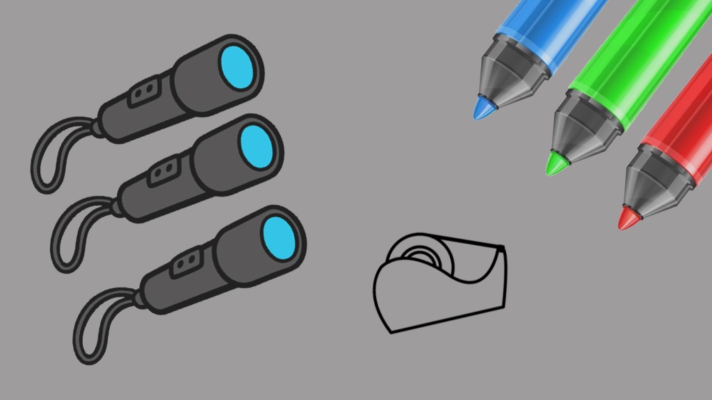 Sólo necesitás linternas con pilas, cinta adhesiva transparente y MARCADORES de colores.